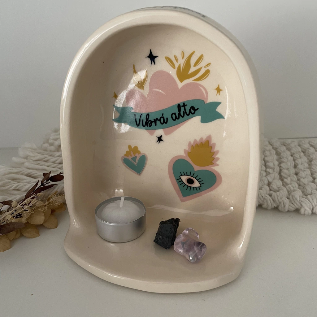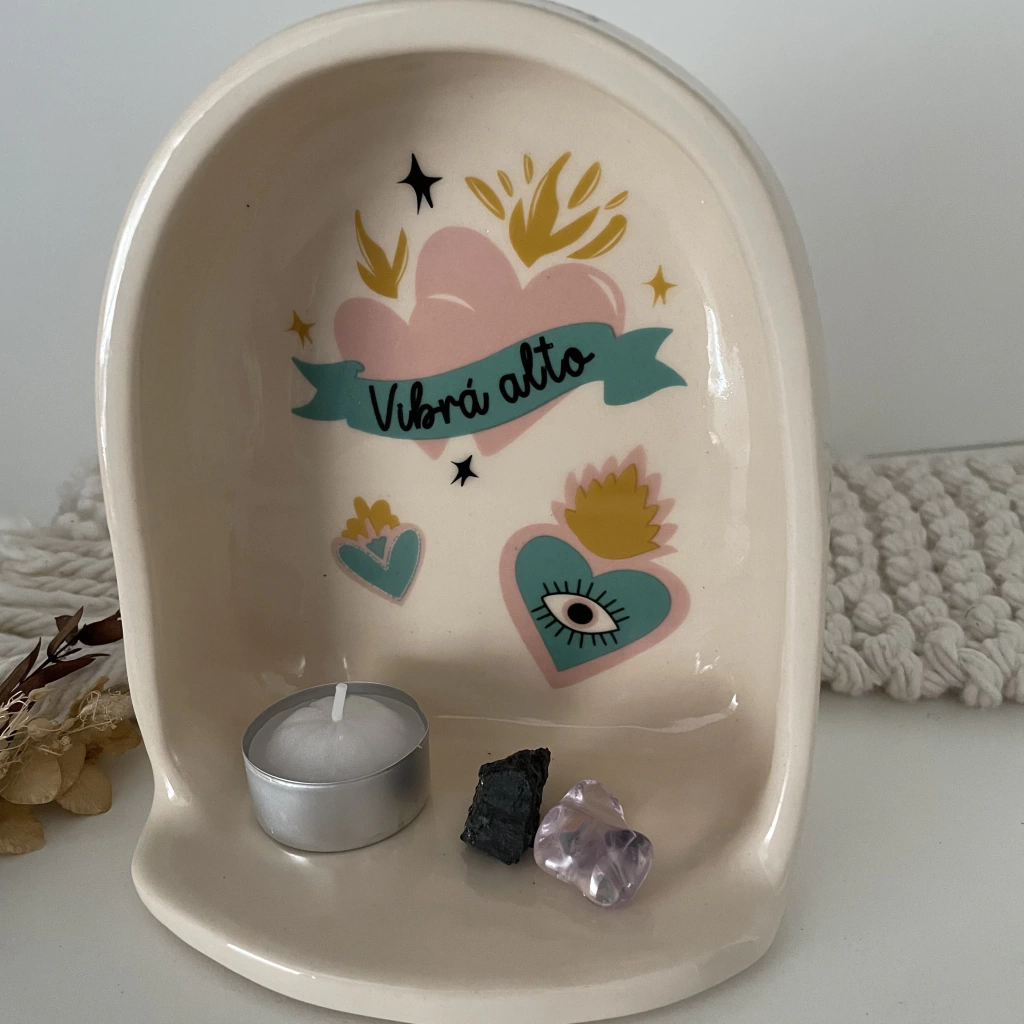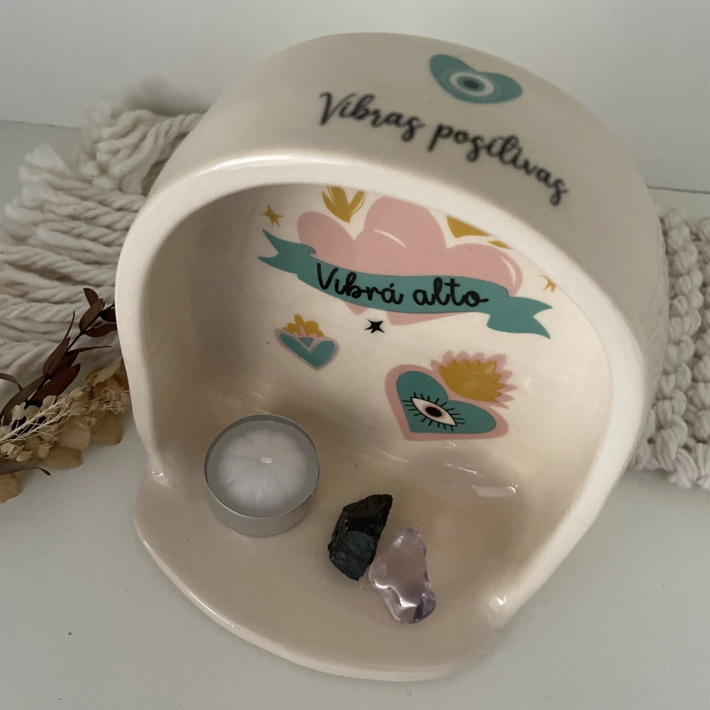 Alta realizado en cerámica Artesanal Vibras positivas y Vibra alto en su interior.
