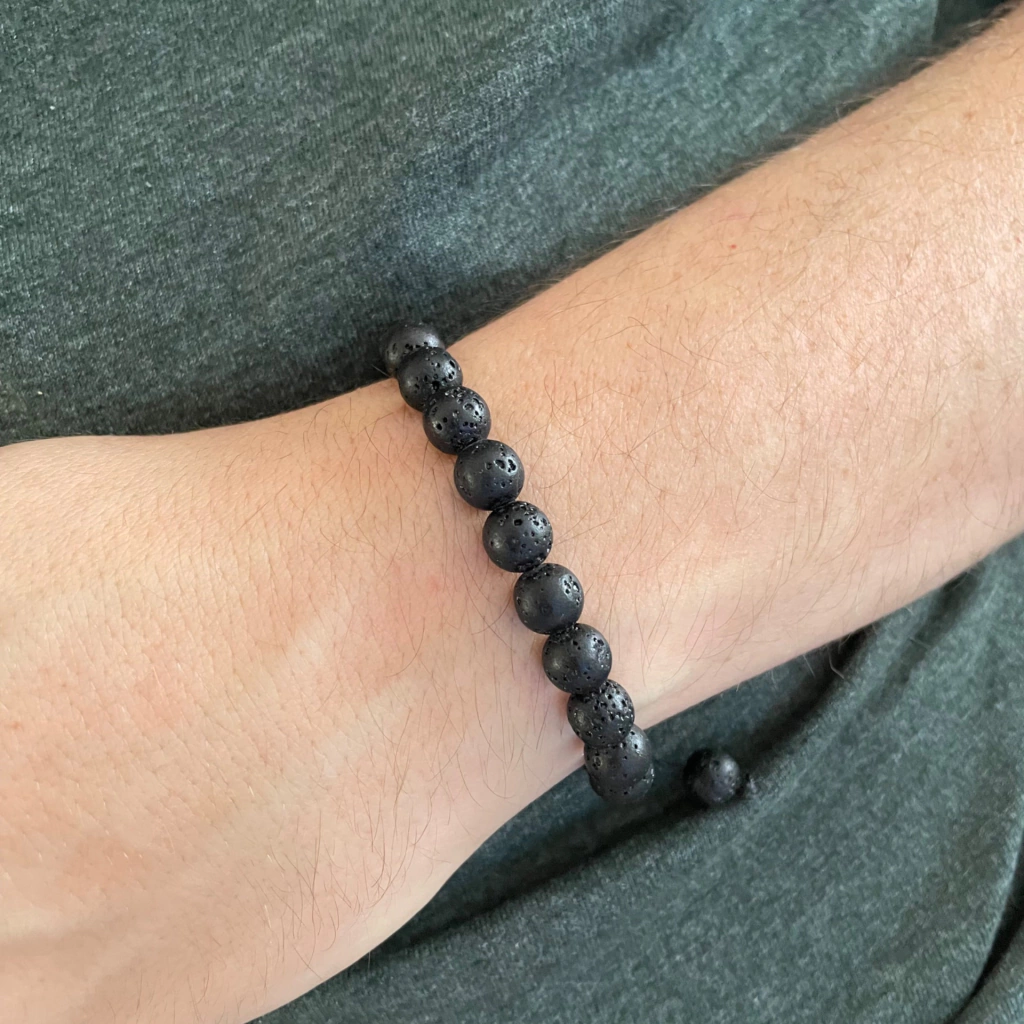 Pulsera para hombres regulable en hilo chino negro con piedra volcánica.